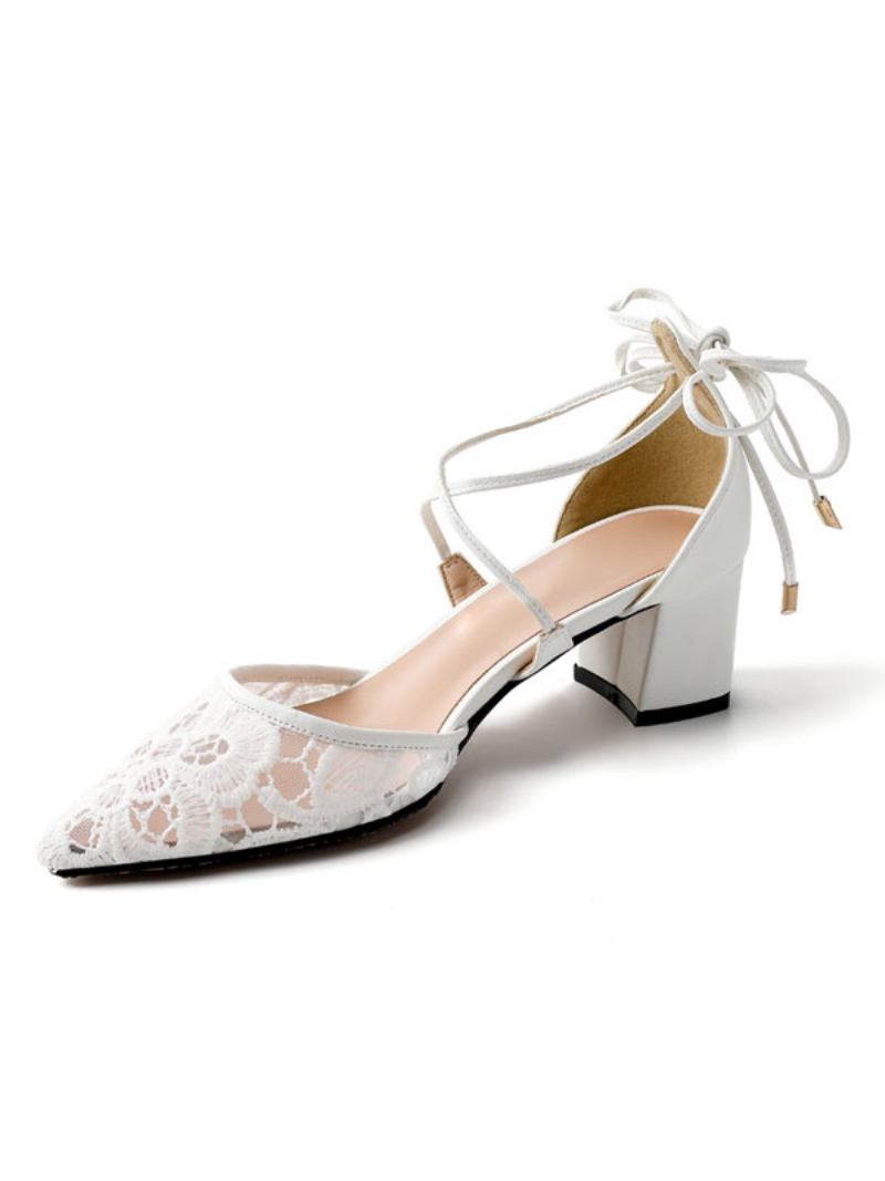 Bombas Dorsay Femininas Renda Com Tiras E Salto Bloco Nupcial
