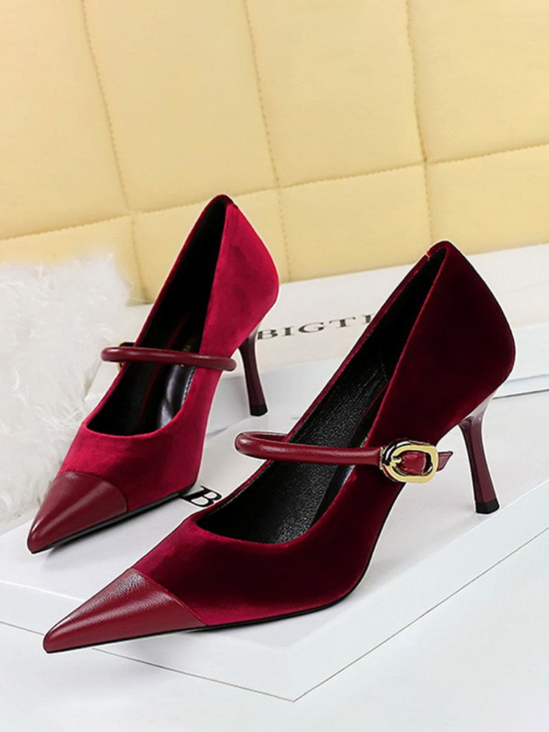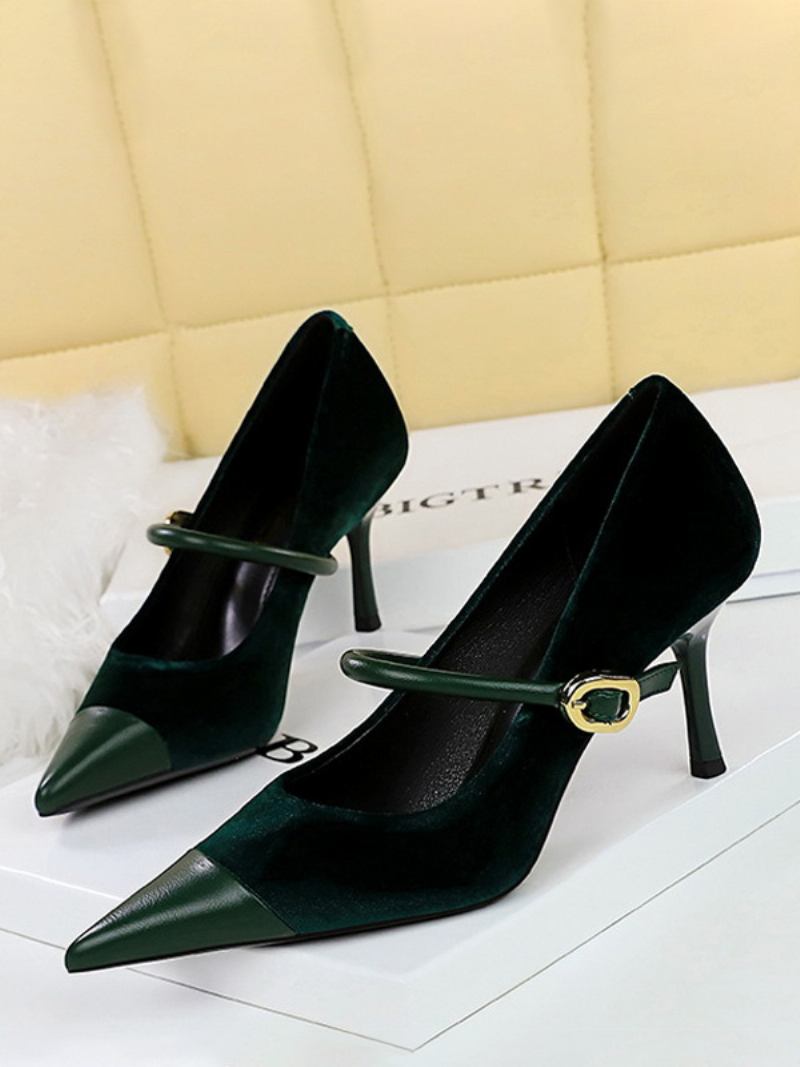 Bombas Femininas Couro Camurça Com Salto Alto E Agulha