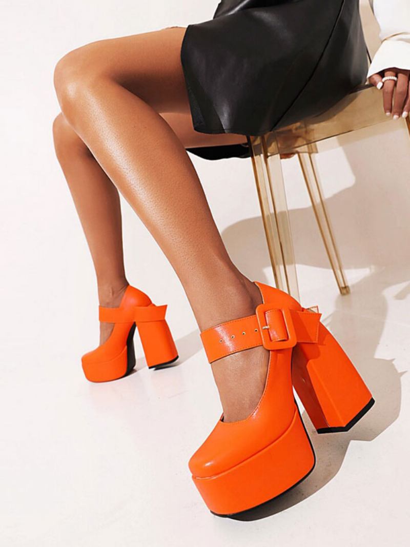 Bombas Femininas Mary Jane Com Plataforma Fivela E Salto Grosso