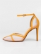 Bombas Femininas Salto Agulha Com Tira No Tornozelo Em Amarelo Malha