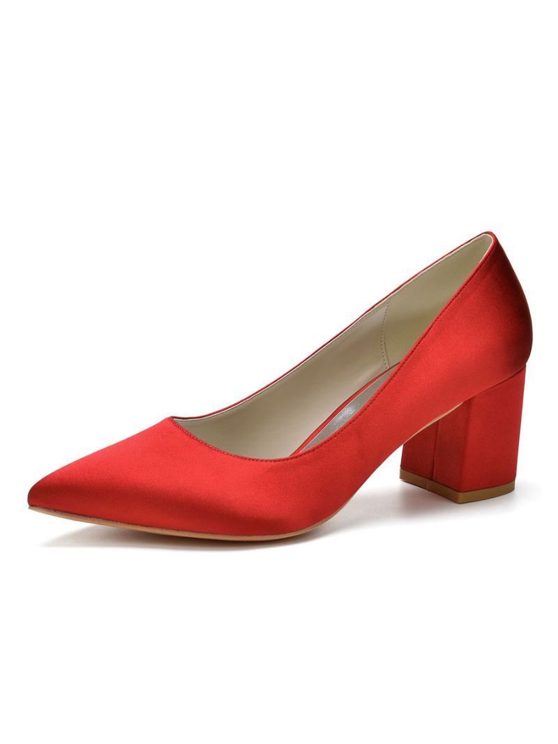 Bombas Femininas Salto Baixo Em Bloco Cetim
