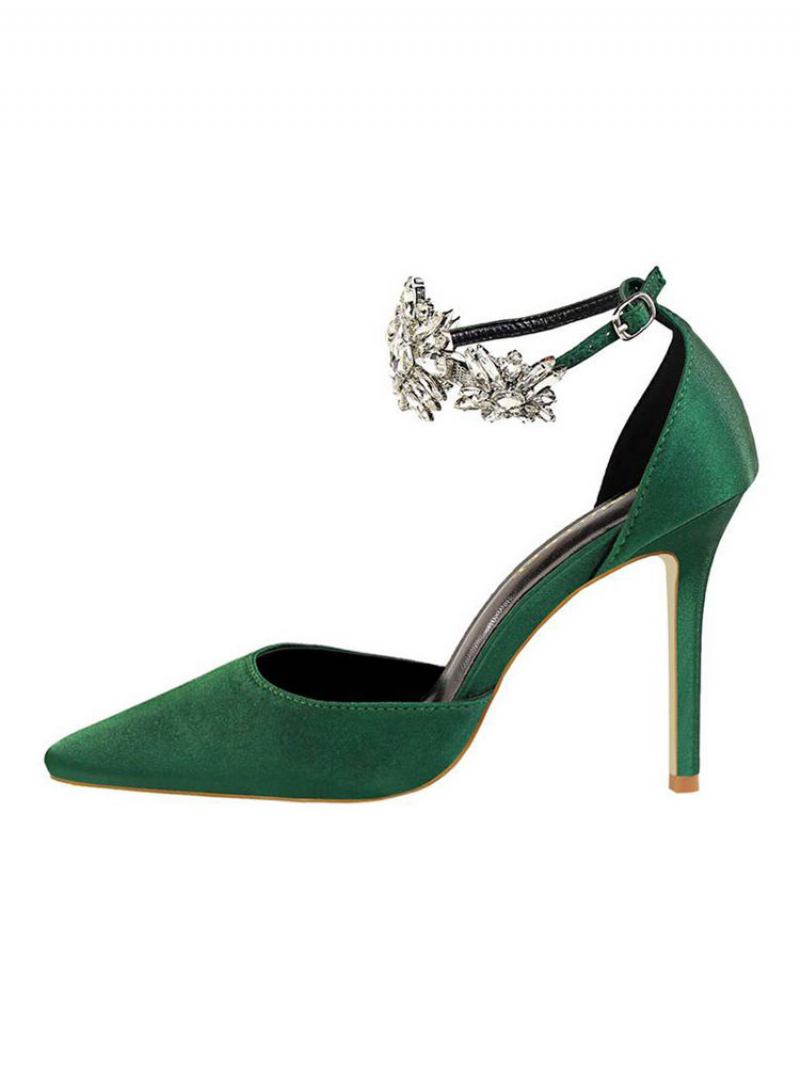 Bombas Noturnas Femininas Com Tira No Tornozelo E Salto Agulha Em Cetim Preto