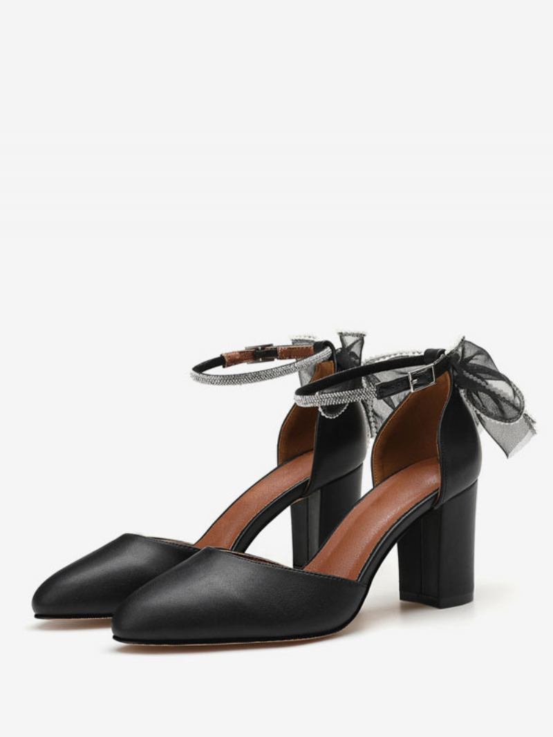 Bombas Salto Bloco Feminino Arcos Dedo Do Pé Redondo Tira No Tornozelo