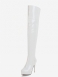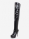 Botas Altas Com Plataforma Na Coxa Femininas Bico Amêndoa E Salto Agulha Couro Brilhante Sobre O Joelho