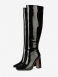 Botas Até O Joelho Couro Preto Bico Quadrado Brilhante Salto Grosso Alto Na Altura Do Para Mulheres
