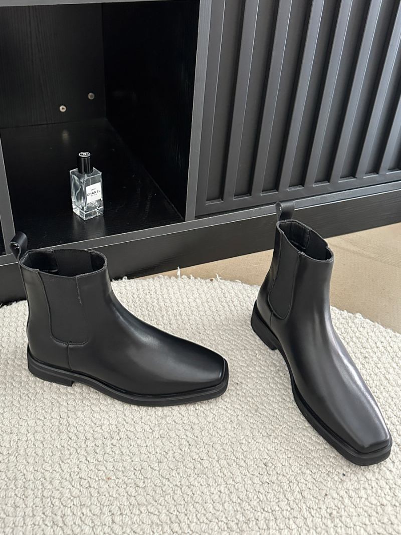 Botas Chelsea Pretas Femininas Com Bico Quadrado E Cano Baixo