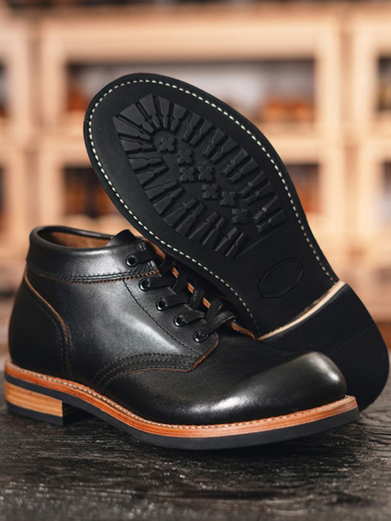 Botas Combate Masculinas Martin Work Pretas Couro Bovino Redondo