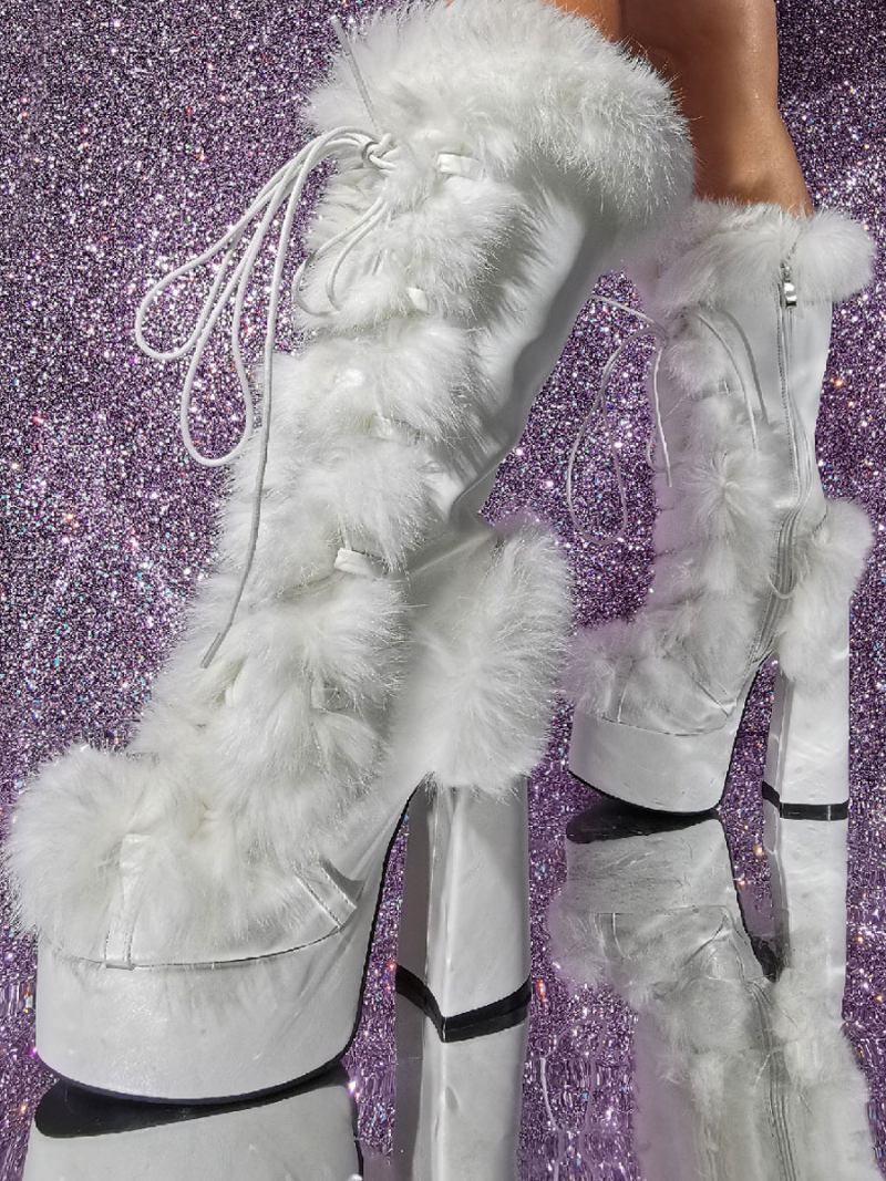 Botas Couro Pu Com Plataforma Redonda E Salto Médio Para Mulheres