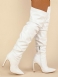 Botas Femininas Acima Do Joelho Bico Fino Salto Grosso Tecido Elástico