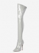 Botas Femininas Acima Do Joelho Couro Preto Bico Fino Salto Agulha Brilhante Coxa Alta