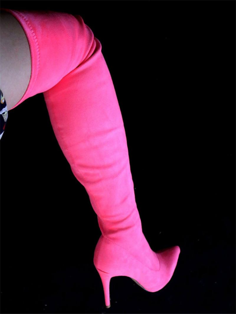 Botas Femininas Acima Do Joelho Elásticas Salto Alto Altas Na Coxa
