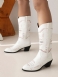 Botas Femininas Brancas Couro Pu Bico Fino Cowboy Panturrilha Média Sapatos Casamento Vaqueira