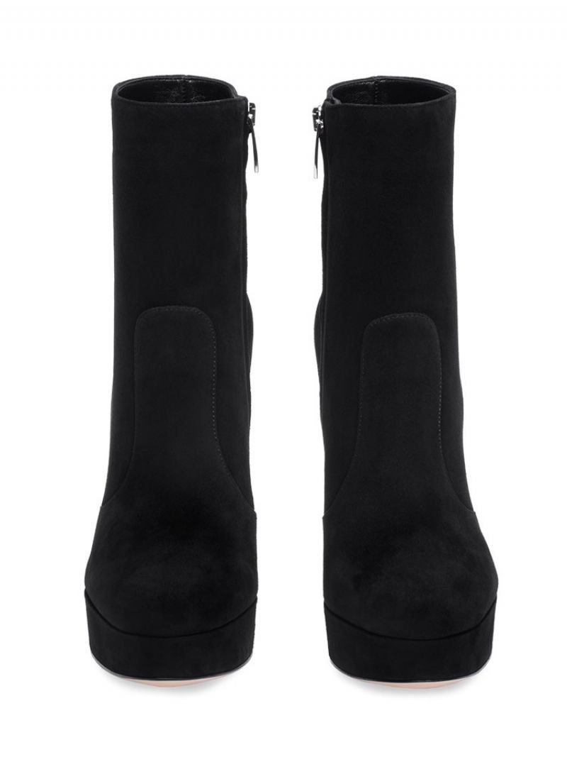 Botas Femininas Camurça Com Bico Redondo E Salto Grosso
