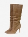 Botas Femininas Camurça Desleixadas Bico Fino Marrom Salto Agulha Cano Médio