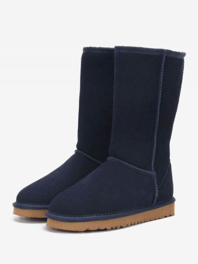 Botas Femininas Camurça Inverno Com Bico Redondo E Cano Médio Para Neve