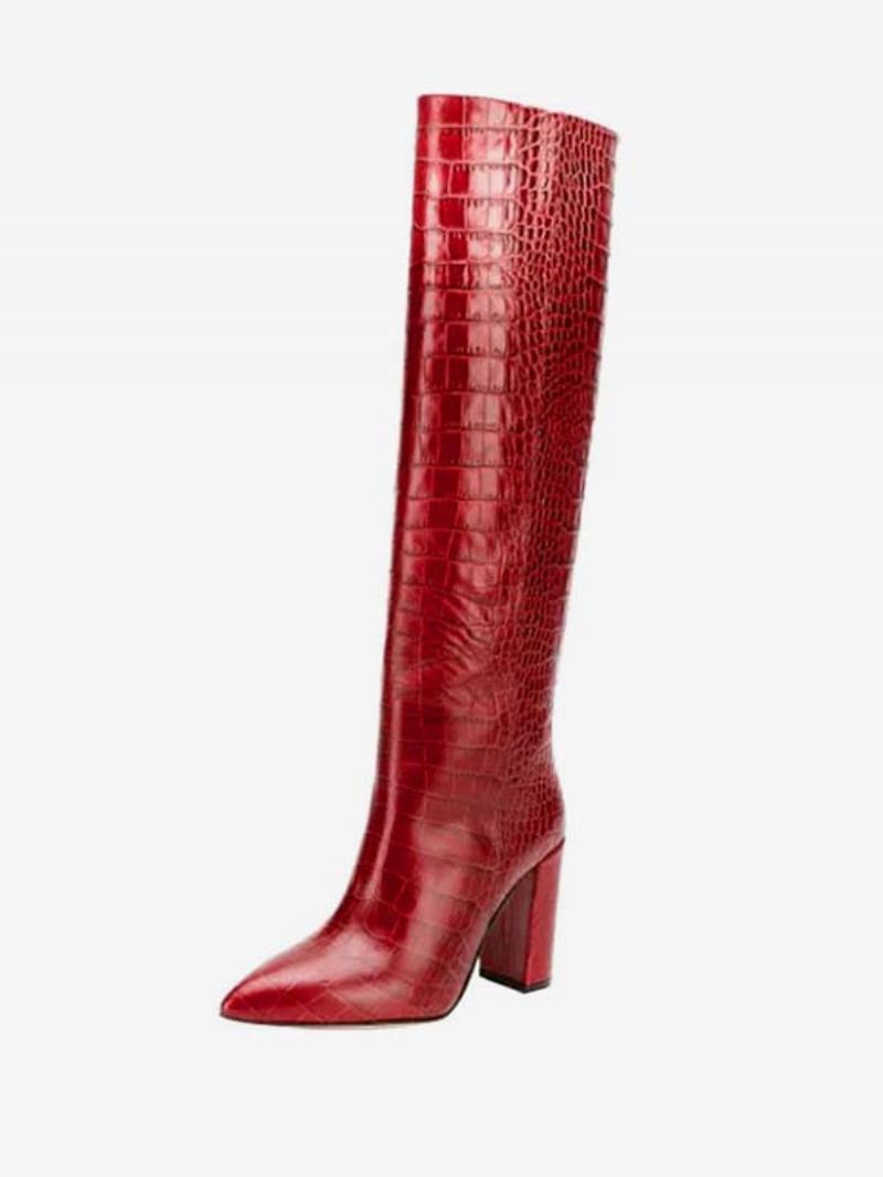 Botas Femininas Cano Alto Com Estampa Crocodilo E Salto Grosso