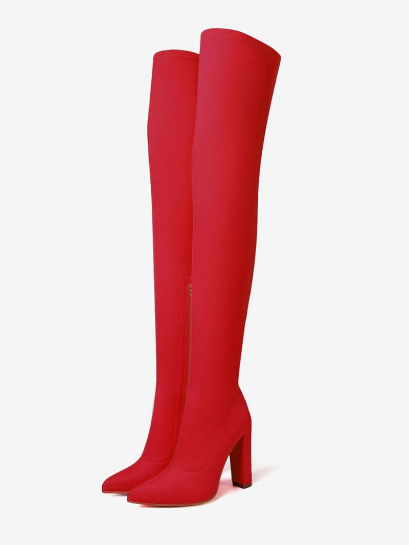 Botas Femininas Cano Alto Com Salto Pontiagudo E Bloco Elástico Sobre O Joelho