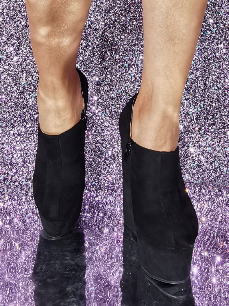 Botas Femininas Com Bico Redondo E Salto Em Cunha