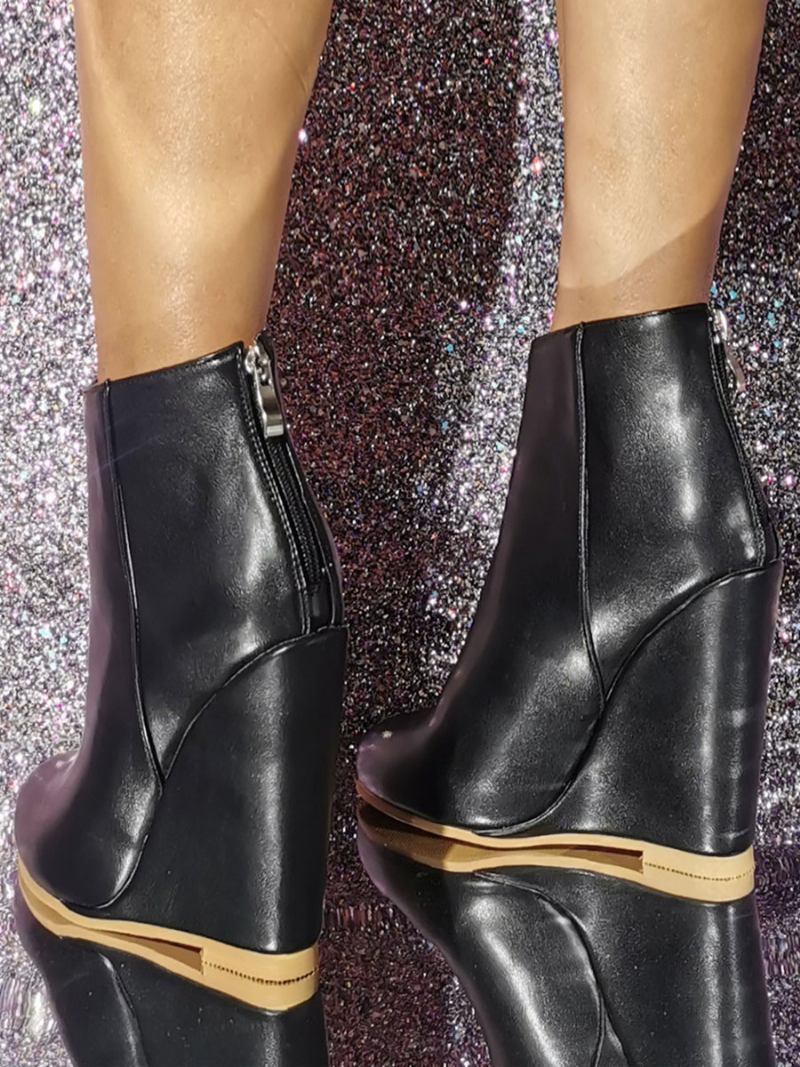 Botas Femininas Com Bico Redondo E Salto Em Cunha