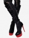 Botas Femininas Couro Pu Com Salto Agulha Até O Joelho
