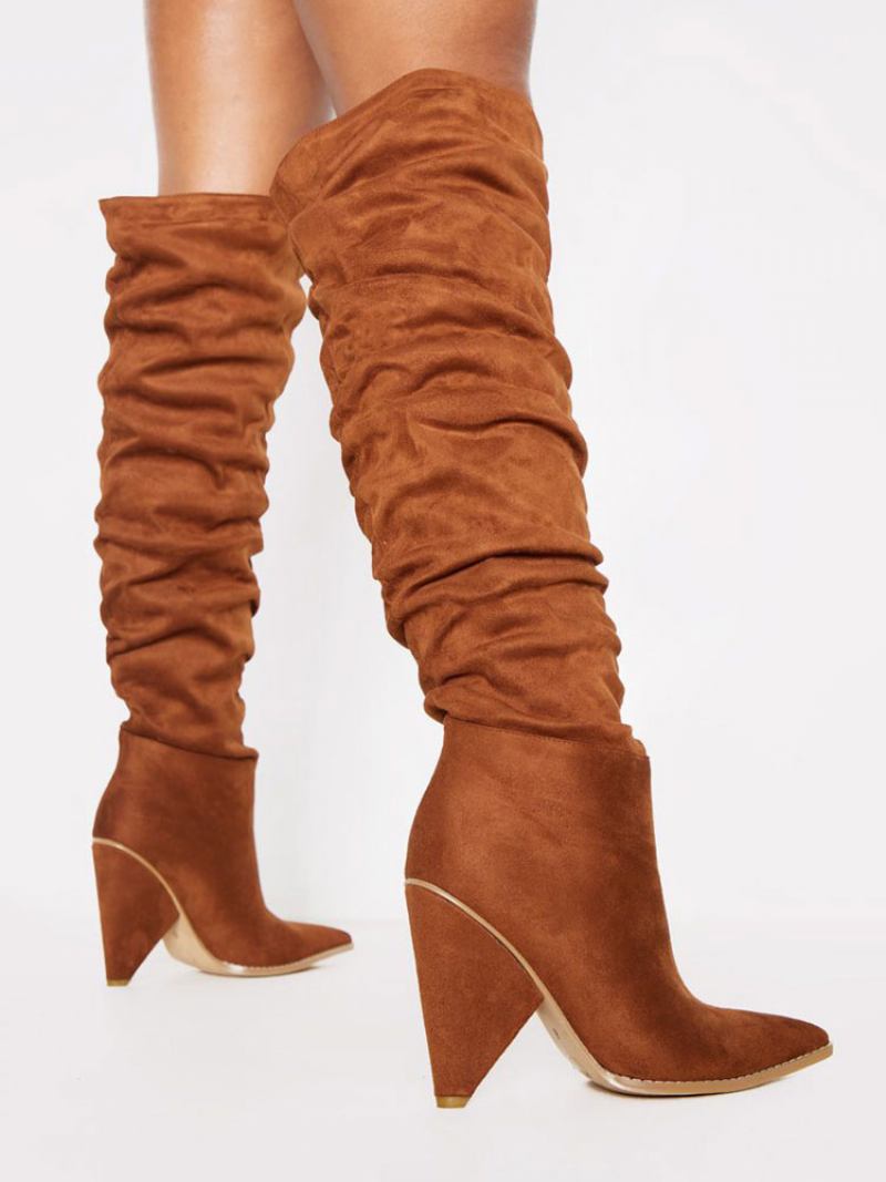 Botas Femininas Desleixadas Sobre O Joelho Com Salto Cônico