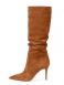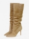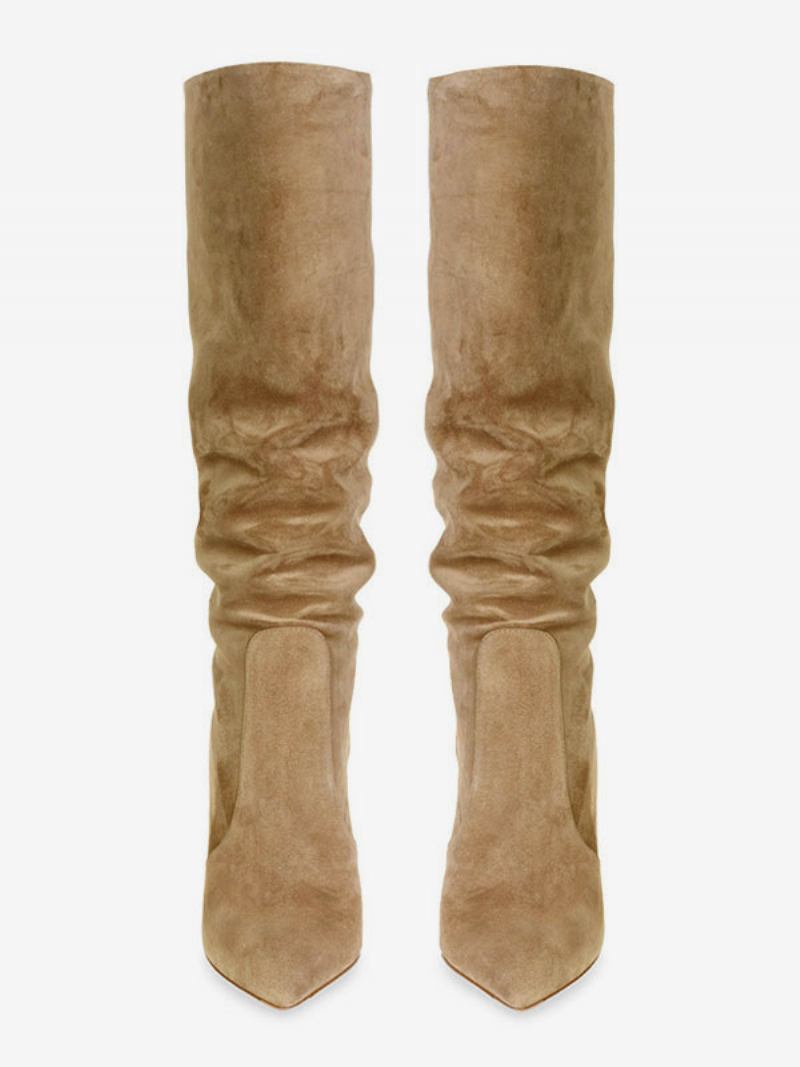 Botas Femininas Despojadas Camurça Com Bico Fino E Salto Alto Na Altura Do Joelho