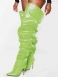 Botas Femininas Largas E Plissadas Com Salto Alto Na Coxa Em Couro Preto Brilhante