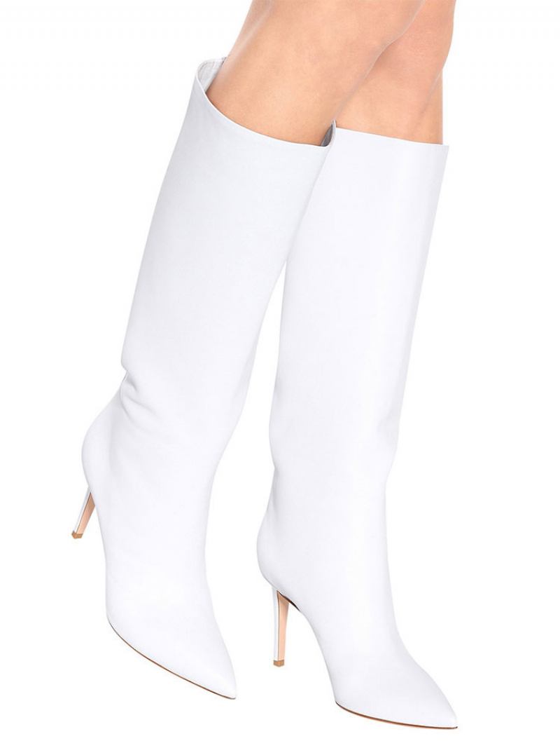 Botas Femininas Largas Panturrilha Borgonha Bico Fino Com Salto Agulha Médias
