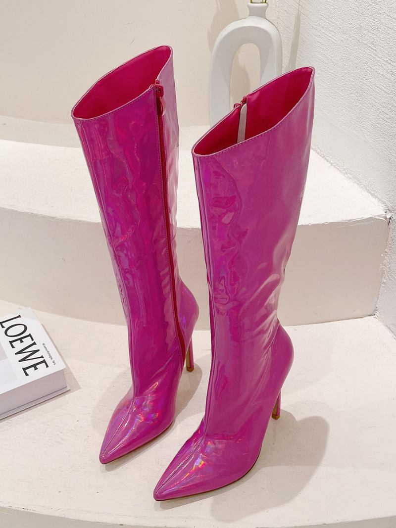 Botas Femininas Largas Panturrilha Chiques Com Bico Fino E Salto Alto