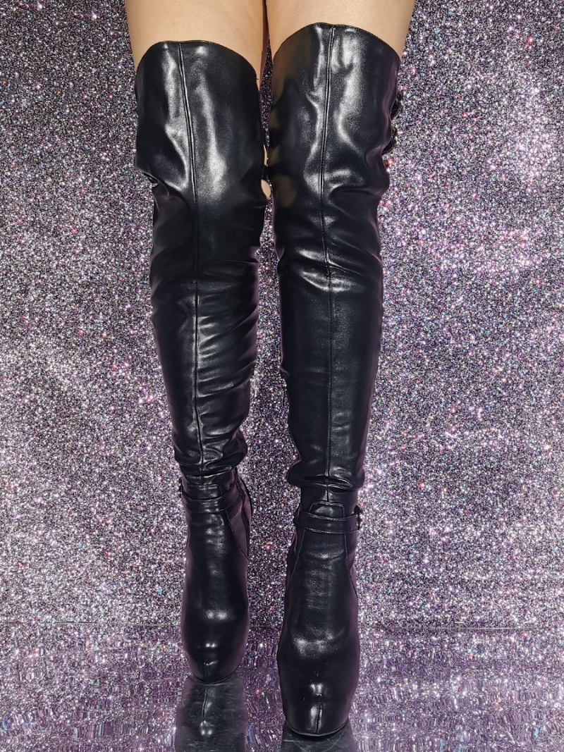 Botas Femininas Pretas Sexy Na Coxa Alta Com Plataforma Recortada Sobre O Joelho