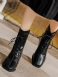 Botas Femininas Vintage Tornozelo Suqare Toe Com Cadarço E Salto Grosso