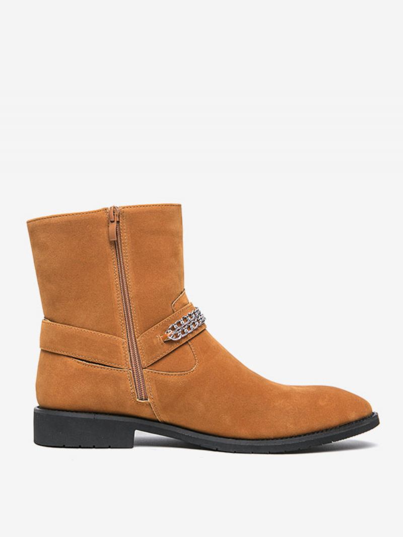 Botas Masculinas Chelsea Camurça Couro Biqueira Redonda