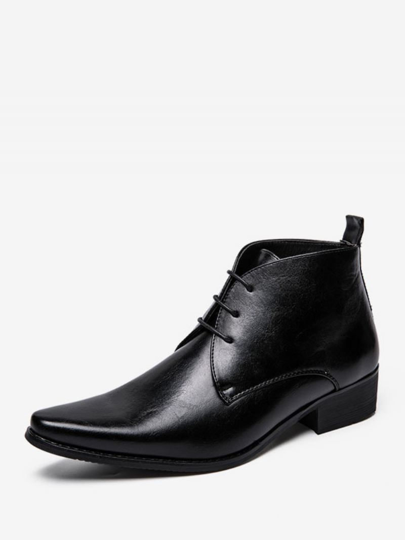 Botas Masculinas Chukka Couro Pu Bico Fino
