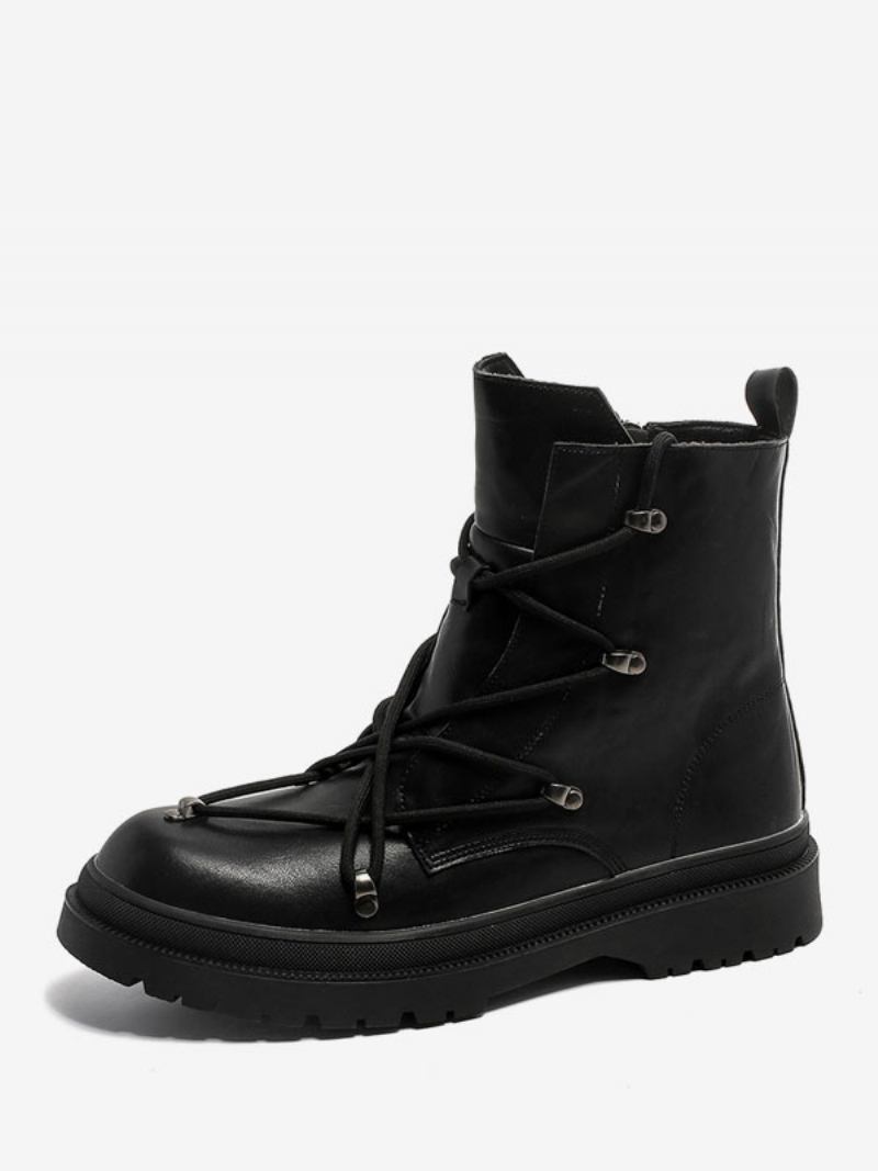 Botas Masculinas Chukka Couro Pu Com Bico Redondo E Correntes Para Festa Peom