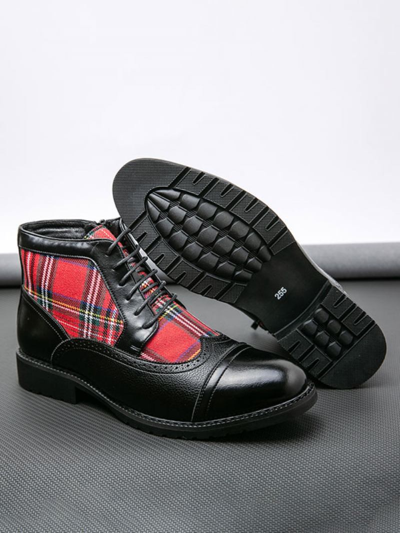 Botas Masculinas Combate Couro Pu Bico Redondo Com Cadarço