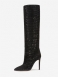 Botas Salto Alto Panturrilha Larga Mulheres Strass Apontou Toe Stiletto Joelho Altas Sexy Sapatos Festa