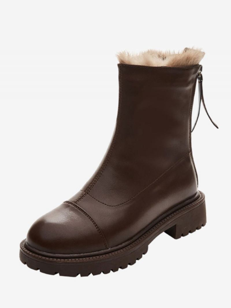Botas Tornozelo Pretas Femininas Dedo Do Pé Redondo Inverno Curtas Com Detalhes Pelúcia