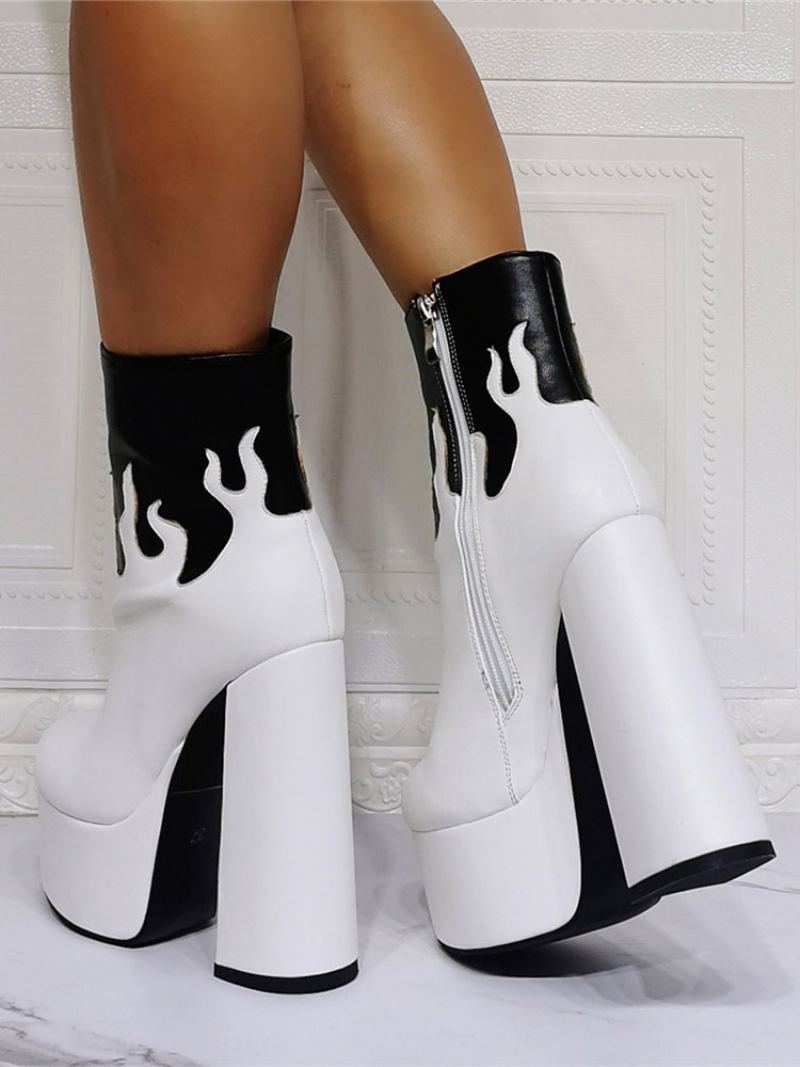 Botins Femininos Com Plataforma Fire E Salto Grosso Em Branco