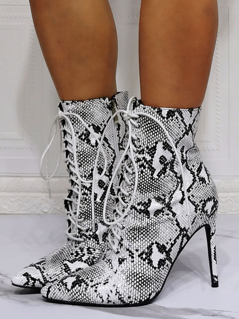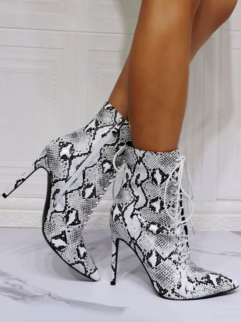 Botins Femininos Python Com Cadarço E Salto Agulha Cinza