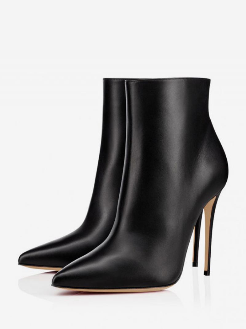Botins Pretos Femininos Com Bico Fino E Salto Agulha
