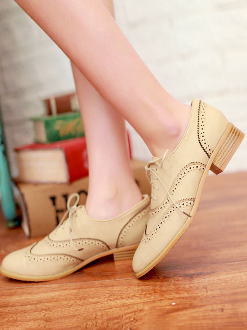 Brogues Femininos Marrons Com Cadarço Na Ponta Das Asas Oxfords Casuais
