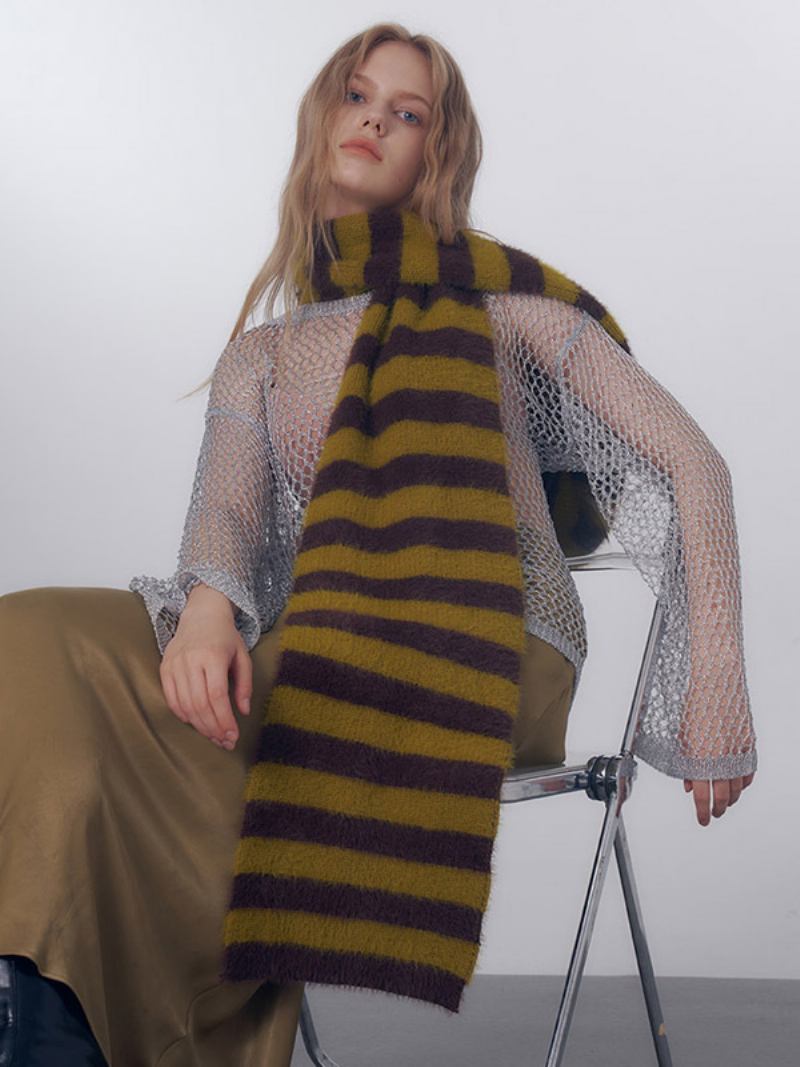 Cachecol Feminino Listrado Vintage Chique Outono Inverno