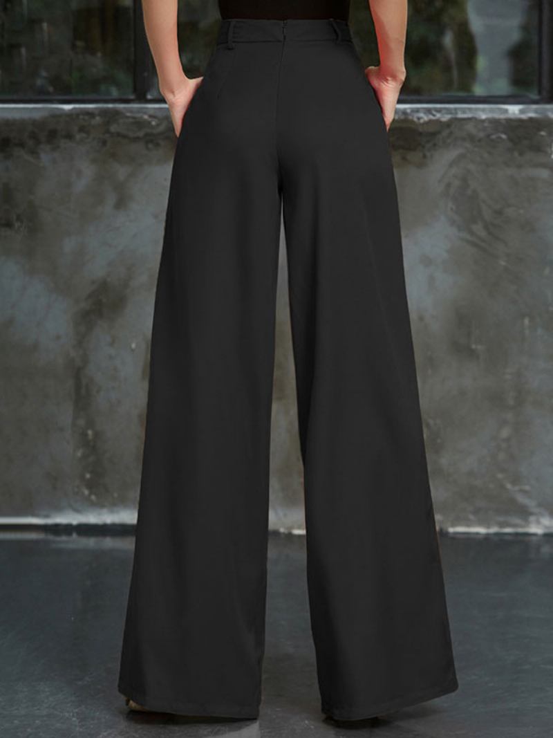 Calça Feminina Preta Plissada Oversized Cintura Levantada