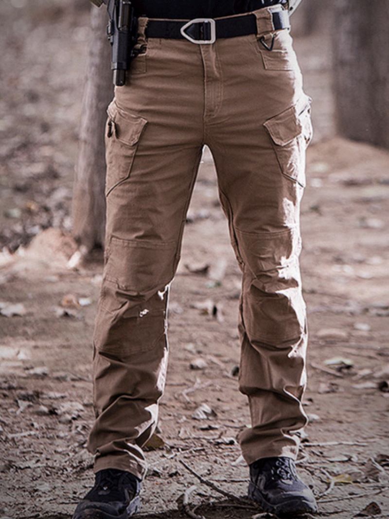 Calça Masculina Casual Irregular Cintura Natural Reta Comprida Cáqui
