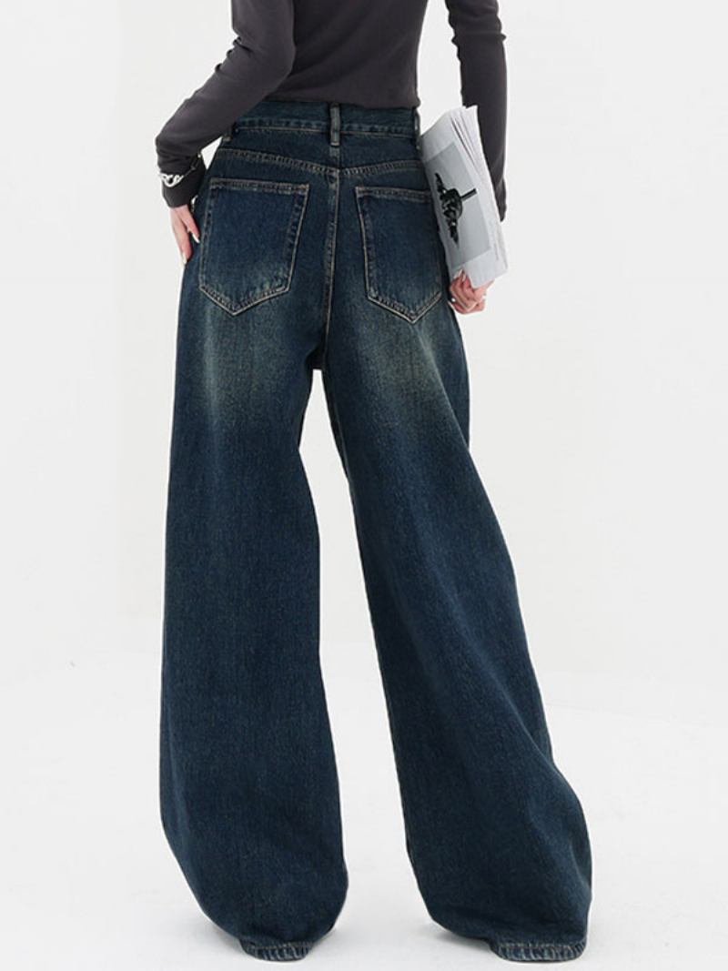 Calças Jeans Retas Para Mulheres Vintage Cintura Alta Perna Larga