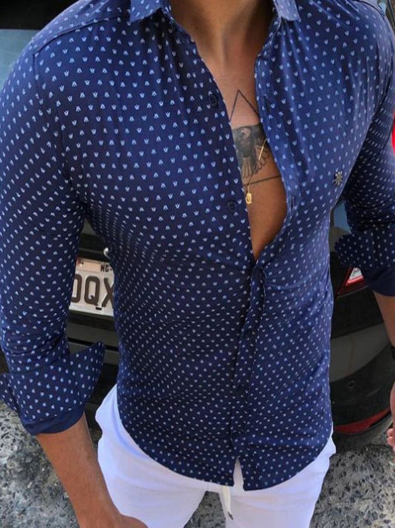 Camisa Casual Masculina Com Gola Redonda Estampada Camisas Masculinas Marinha Escura