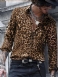 Camisa Casual Masculina Com Gola Redonda Simples Oversized Estampa Leopardo Café Marrom Camisas Masculinas