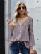 Camiseta Feminina Com Mangas 3/4 Comprimento Botões Pretos Renda Transparente Decote Em V
