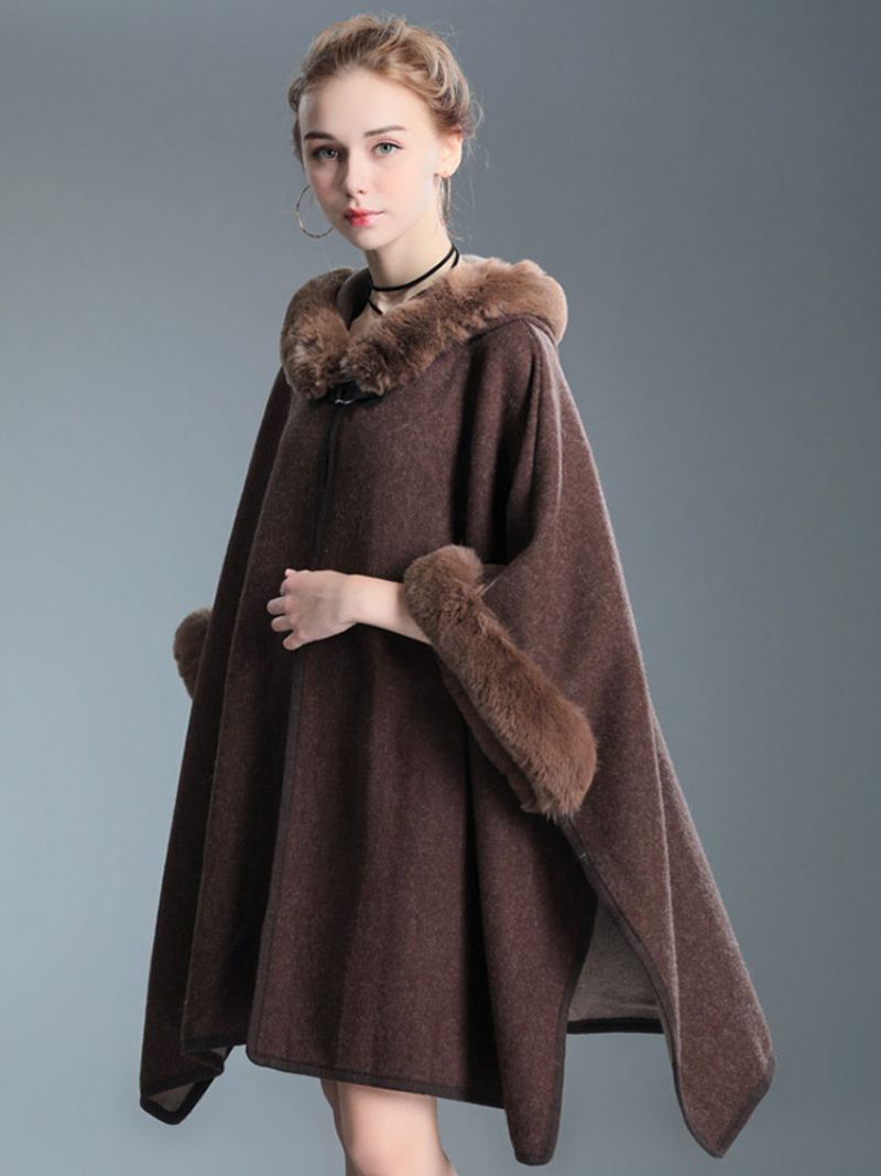 Capa Com Capuz Pele Sintética Outono Poncho Casaco Para Mulheres