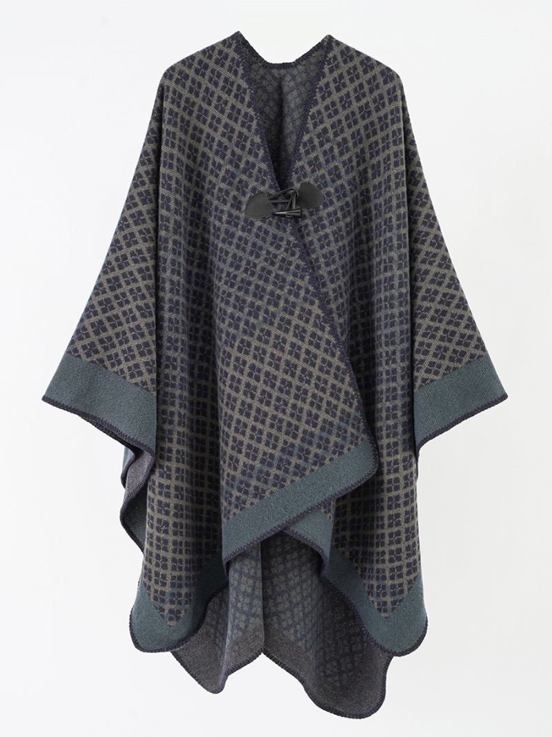Capa Feminina Estampada Com Fecho Alternado Diário Casual Poncho